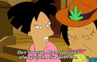 Don't worry, Mom, you can always come live with me. No, we can't. Who do you think been paying your rent? What's rent?