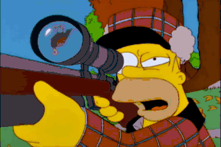 A turkey! Dad's gonna slaughter that poor turkey! Not if I scare it away with this cougar call. You did it, Moe! A cougar! Die, cougar! Ow! My leg!