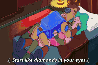 J, Stars like diamonds in your eyes J, My life is a fucking joke! J, Goodbye, moon men J,