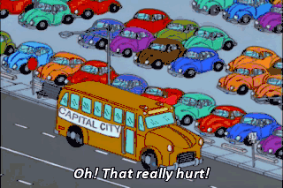Oh! That really hurt! Two for flinching. Now, as we cross the street, I want you to hold hands with your buddy.