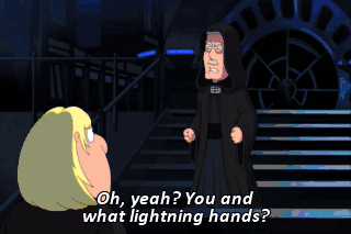 Oh, yeah? You and what lightning hands? Oh! Now you've done it. (SCREAMING) Yeah! I'm a bad guy! Yeah! Yeah! How about that, huh? Look at that! Look what I can do! Yeah! Out the butthole!