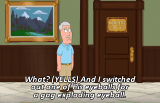 What? (YELLS) And I switched out one of his eyeballs for a gag exploding eyeball.