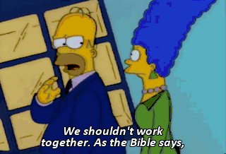 We shouldn't work together. As the Bible says, "Thou shalt not horn in on thy husband's... racket." Where does the Bible say "racket"? It's in there. Look, Marge, we just don't need the money that bad.