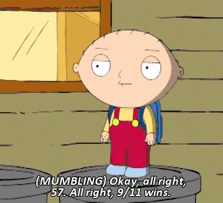 (MUMBLING) Okay, all right, 57. All right, 9/11 wins.