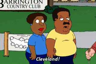 Cleveland! I mean, the pullout sofa bed. Cleveland, This is Barrington. You could be the first black guy ever to play this course. People are gonna be impressed. Hey, a black guy! Ooh, Fun!