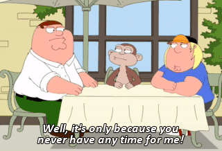 Well, it's only because you never have any time for me! Peter, do you think you could make a little more time for your son?