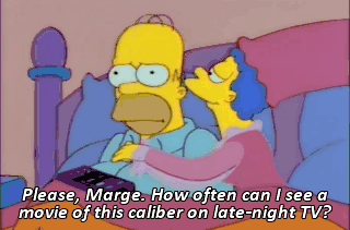 Please, Marge. How often can I see a movie of this caliber on late-night TV? Is there something wrong, Homie?