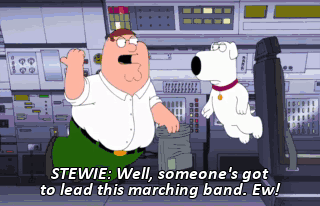 STEWIE: Well, someone's got to lead this marching band. Ew!