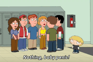 Nothing, baby penis! (LAUGHING) Well, yes, I have a baby... Uh... Well, for your information, I don't want a big penis. I think they're messy. Well, you've effectively ended my reign of coolness, haven't you?