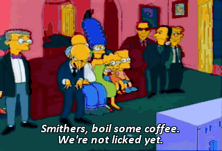 Yes, we are. Come on, boys. The old guy's finished. Wait. Come back.
