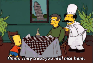 Hmm. They treat you real nice here. Hey, Salvatore, guess who's here! Mr. Kookalamanza and-a some real ugly kid.