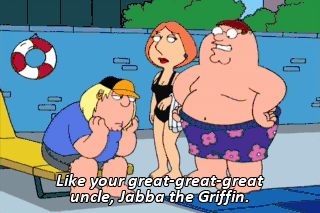 Like your great-great-great uncle, Jabba the Griffin. Raja nabadua gola wookie nipple pinchie. Honey, if you wanna lose weight, I'll put you on a diet, and your father can help you exercise.