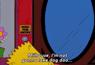 Milhouse, I'm not gonna take dog doo... that's been on the dirty ground and put it on my face. I have a better idea. Hey, Dad, wake up! Huh? What? I'm awake! I'm awake! I'm a productive member of the team.