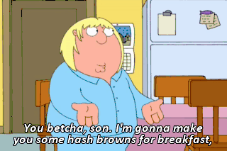 You betcha, son. I'm gonna make you some hash browns for breakfast,