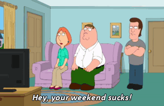 Hey, your weekend sucks! I've already gone on a hike and fixed a few things around my house! What are you doing? Peter, who is that man? I don't want to talk about it.
