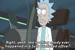 Right, yeah, like nothing shady ever happened in a fully furnished office? You ever hear about Wall Street, Marty? Y-you know what those guys do in -- in -- in their fancy boardrooms?