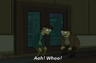 Aah! Whoo! Made it. So, anyway, uh, what are you wearing tomorrow? Honk, honk, honk!