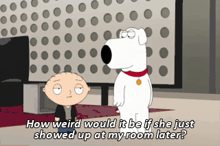 How weird would it be if she just showed up at my room later?