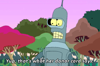 Yup, that's what her donor card says. Goodbye, my love. (SOBBING)