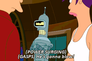 (POWER SURGING) (GASPS) He's gonna blow! Party, Bender! Party for your life! No chance, high-pants! I'd rather die and kill all of you than party for one more millisecond!