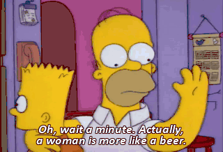Oh, wait a minute. Actually, a woman is more like a beer. They smell good. They look good. You'd step over your own mother just to get one! But you can't stop at one. You wanna drink another woman.