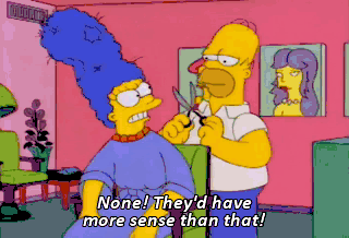 None! They'd have more sense than that! Oh, you're feisty. I'm gonna give you a Madonna cut. Homer, I don't need you around me 24 hours a day!