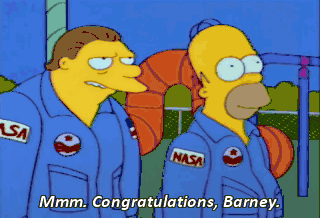 Mmm. Congratulations, Barney. That's very gracious of you, Homer. Please join us in a toast. To the mission! It begins! Give me that! Stop him!