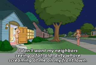 I don't want my neighbors seeing a fat, old, dirty whore screaming at me on my front lawn. "Whore"?