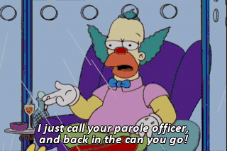 I just call your parole officer, and back in the can you go! (LAUGHING) (THE ITCHY & SCRATCHY SHOW THEME PLAYING) ALL: Yay! (SIGHS) Cartoons. America's only native art form.