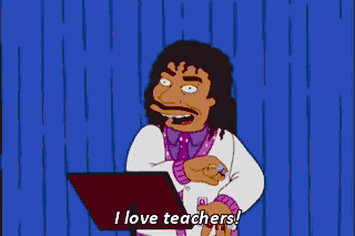 I love teachers! In fact, I'm a teacher. I taught Paul McCartney to go "Whoo!" "Purple Rain!" Shut up! Michael Jackson just told me to shut up!