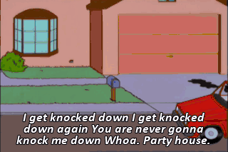 I get knocked down I get knocked down again You are never gonna knock me down Whoa. Party house. Hey, where's my keg?