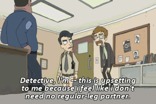 Detective, l’m -- this is upsetting to me because i feel like i don't need no regular-leg partner.
