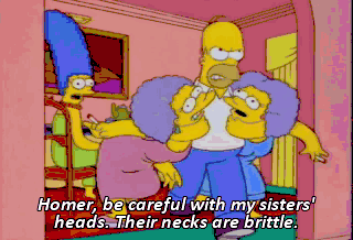 Homer, be careful with my sisters' heads. Their necks are brittle.