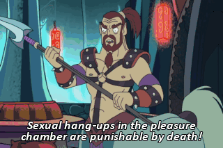 Sexual hang-ups in the pleasure chamber are punishable by death! Off with their heads!
