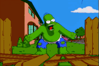 Ohh! Homer mad! Homer smash! Get revenge on world! Look! It's the Incredible Hulk!