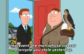 I represent the man whose sidecar motorcycle you stole yesterday. You've piqued my interest. Go on.