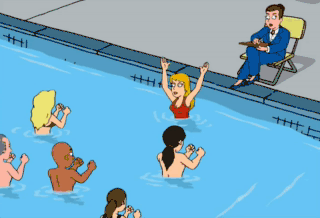 Ok, come on, everyone. Exercise is an important part of recovery. Just work with the resistance of the water. 10 more reps.