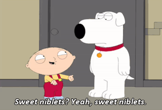 Sweet niblets? Yeah, sweet niblets. That's her catchphrase, sweet niblets. Say it. - Say it back to me. - What? - Say, "sweet niblets"! - Sweet niblets. That wasn't so hard, was it?