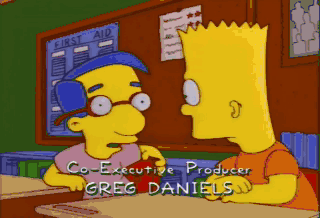Which kind of sprinkler do you like? The one that goes like this? Or the one that goes like this? Oh, and there's this one! It's the last day of school, Milhouse.