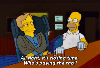 All right, it's closing time. Who's paying the tab? I am. I didn't say that. Yes, I did. D'oh.