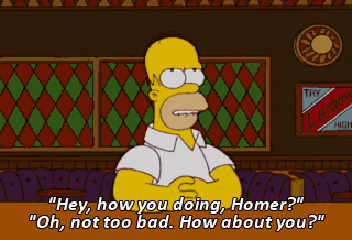 "Hey, how you doing, Homer?" "Oh, not too bad. How about you?"