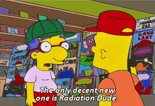 For example, Radioactive Man has his famous catchphrase, "Up and Atom!"
