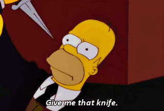 Give me that knife. No, it's mine. Homer. Use the for-- The Force? - The forks. Use the forks. - Oh.