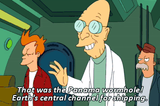 That was the Panama wormhole! Earth's central channel for shipping. (CHUCKLING) How humorous. Yes, it's sort of a Comedy Central channel. And we're on it now!