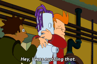 Hey, I was nuzzling that. COMPUTER: Attributes transferred. Shoe size 12. Et cetera. Brace for emergency landing! What? We survived the crash? Oh, Fry!