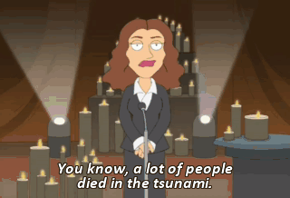 You know, a lot of people died in the tsunami. But don't worry. I didn't. And I'll be here to entertain you and love my life for many, many years to come. Me! Me!