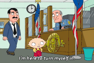 I'm here to turn myself in. I have a dismembered Baltic hooker bleeding through the tarp in my trunk. Oh, look at the little baby. Aren't you cute? Where's your mommy?