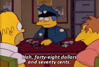 Hah, forty-eight dollars and seventy cents. Agh, you know, we don't usually take rusty money.