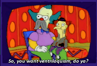 So, you want ventriloquism, do ya? All right, watch this. Hello, Alphonse. I've got a riddle for you. Why is a raven like a writing desk?
