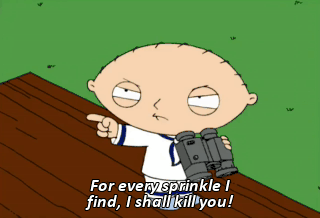 For every sprinkle I find, I shall kill you!